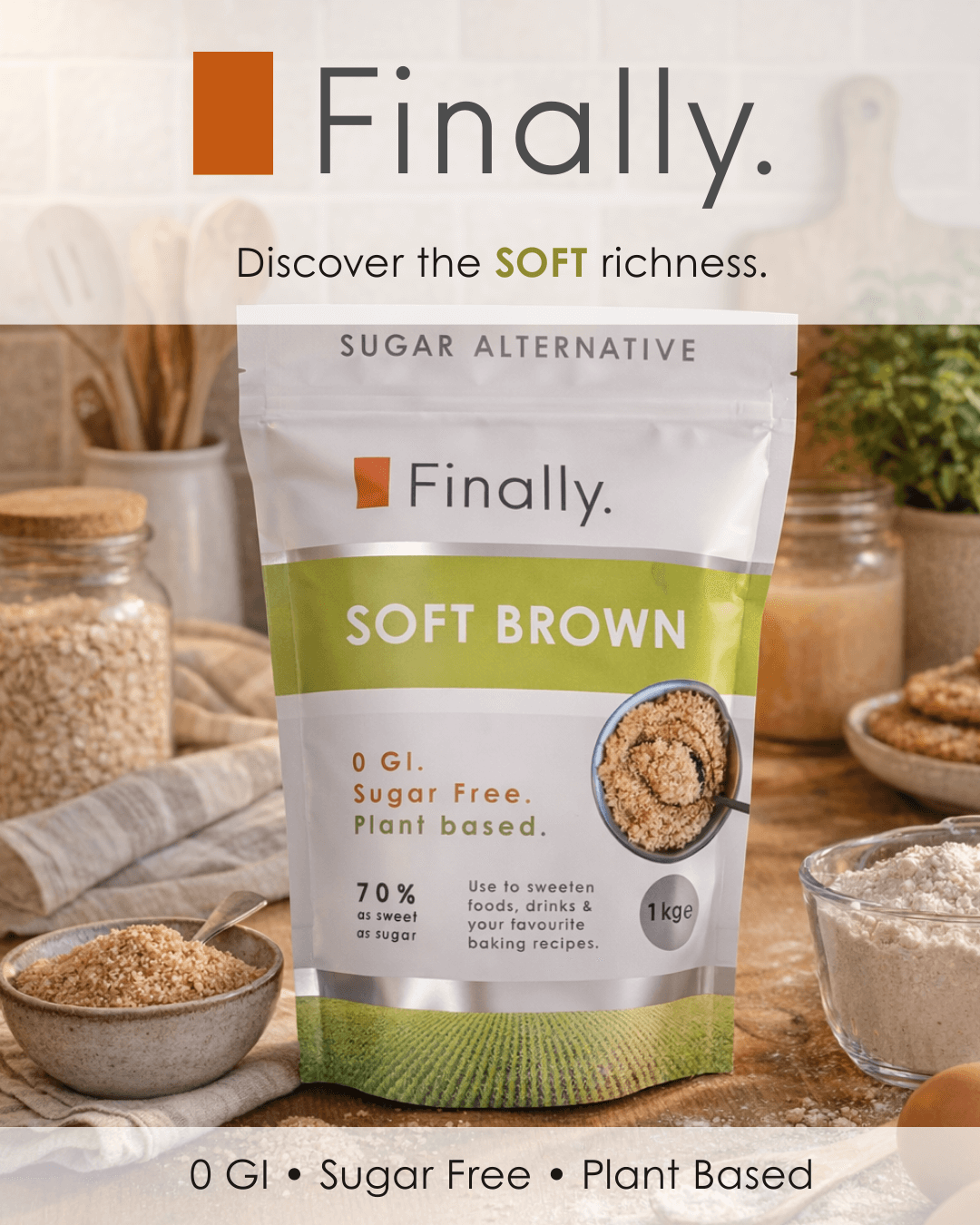 From cookies, muffins, and crumbles to caramel sauces, marinades, and everyday sweetening, Finally. Soft Brown enhances your creations with natural sweetness and rich brown sugar flavour without the sugar crash.