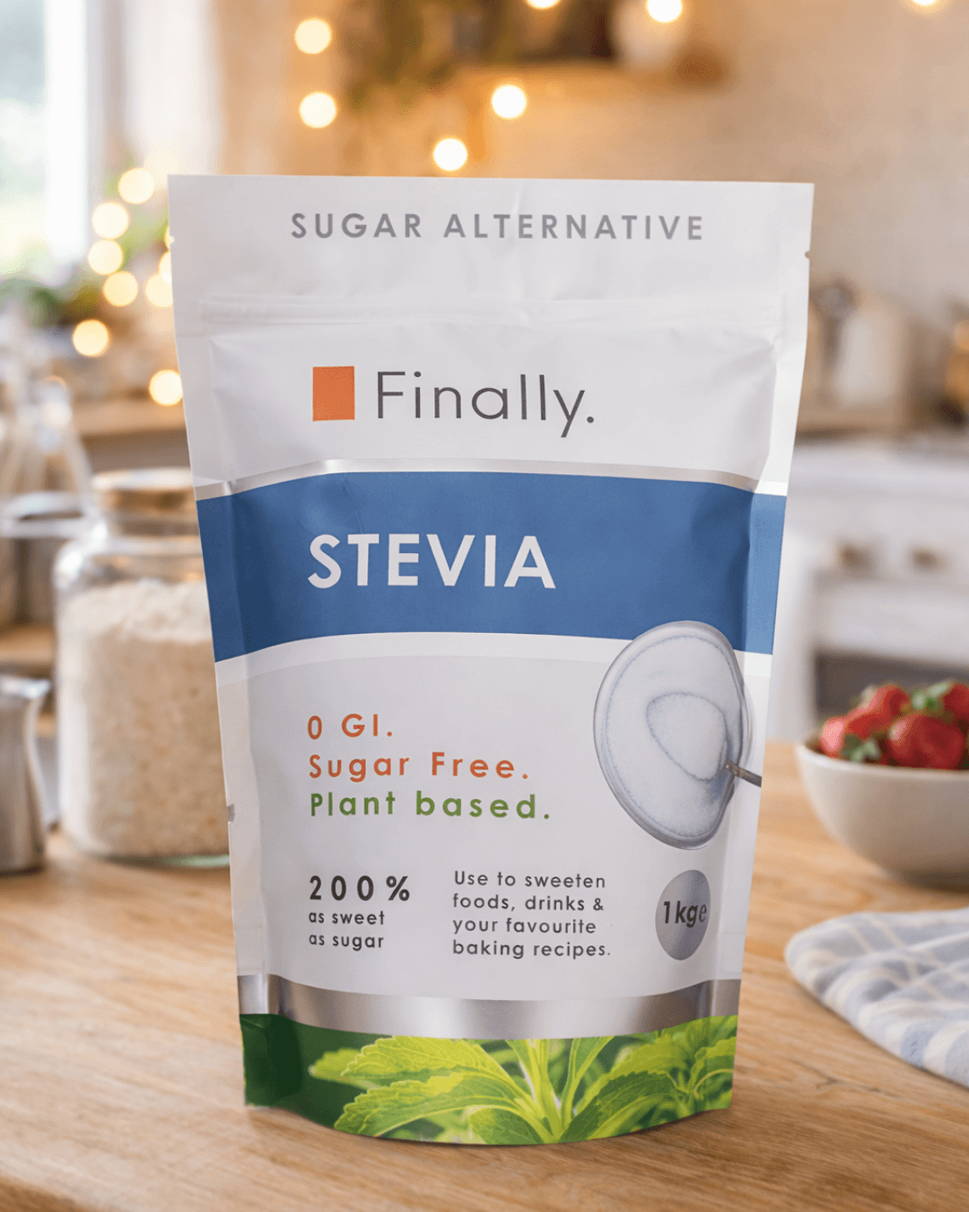 Because stevia is many times sweeter than sugar, we carefully blend it with plant-based erythritol, which acts as a natural bulking agent, and natural flavourings to create a taste and texture that’s refreshingly close to sugar. The result is a deliciously light, crunchy sweetener that dissolves easily in hot drinks and works perfectly for baking, cooking, or simply sprinkling over your favourite foods.