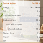 Ingredients: Erythritol (E968) bulking agent, Steviol glycosides (0.8%)
